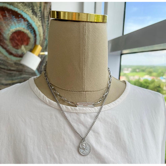 CleModa Aura Paris Silver Double Chain Necklace