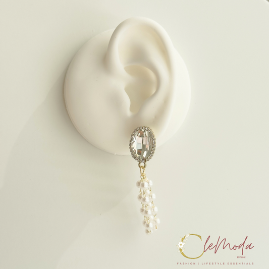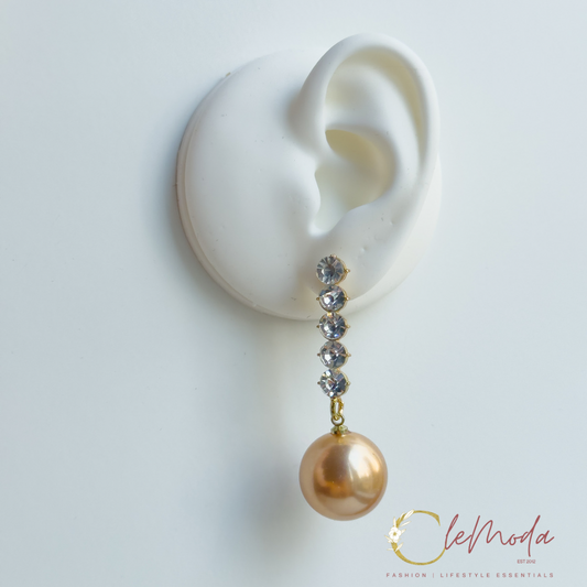 Unica Crystals + Large Round Copper Pearl Drop Earrings
